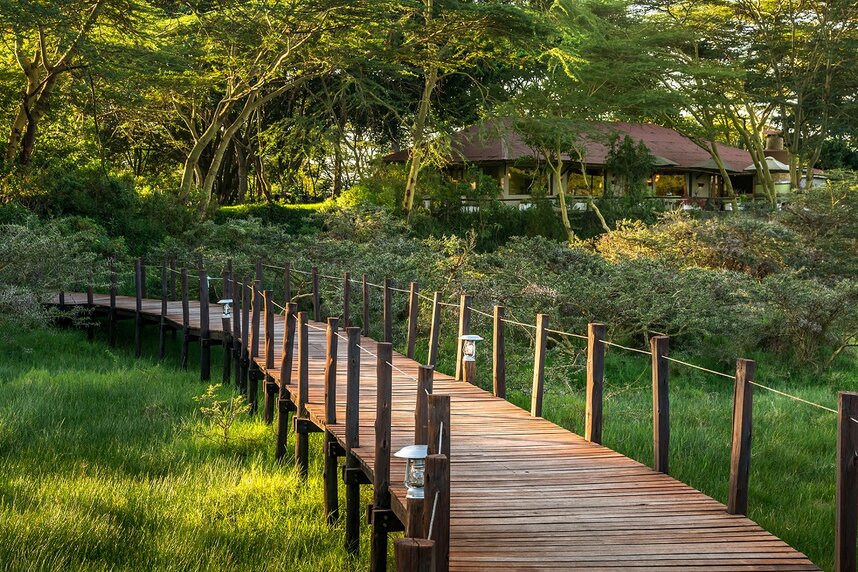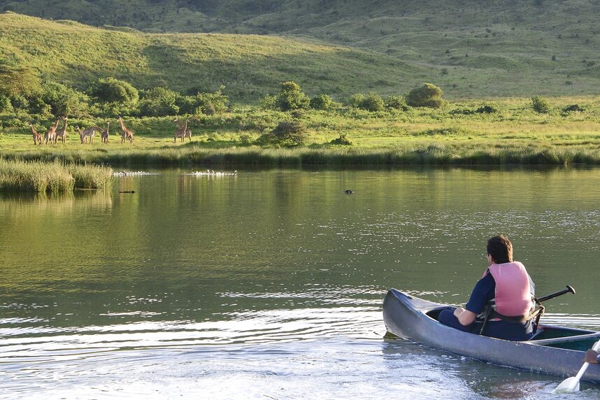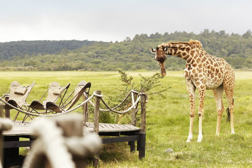 Die durch den gleichnamigen Film bekannte Lodge liegt auf 1.600m Höhe in einem malariafreien Gebiet und befindet sich inmitten des feuchtgrünen Meru-Ökosystems, wo sich Colobus-Affen spielerisch von einem Ast zum anderen schwingen. Die steil aufragende Kulisse des Vulkans Mount Meru sowie die Seen und Regenwälder sind malerisch schön und ermöglichen eine Vielzahl an Aktivitäten. Vor Ort können Sie Pirschfahrten, Kanutouren oder Wanderungen buchen. Das Herz des Anwesens sind die einst privaten Wohnhäuser von Hardy Krüger. Im Hauptgebäude befinden sich eine Bar, sowie eine gemütliche Bibliothek mit Leseecke, die zu gemütlichen Stunden einladen. Das älteste Gebäude dient als Aufenthalts- und Speiseraum für die Gäste, diese können sich hier nach einer aufregenden Safari austauschen und in entspannter Atmosphäre zusammen sitzen. Hier werden Sie auch mit schmackhaften Gerichten verwöhnt. Von den Terrassen der beiden Hauptgebäude eröffnen sich fantastische Blicke auf den majestätischen Kilimanjaro und die Momella Wiesen mit ihrer reichen Tiervielfalt.