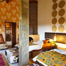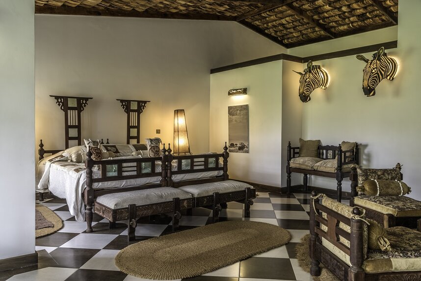 Auf Hatari befinden sich drei, inmitten von Akazien gelegene Gebäude mit neun liebevoll eingerichteten Zimmern im Retro Stil. Diese verfügen fast alle über einen offenen Kamin und ein großzügiges Badezimmer. Die Zimmer der Lodge wurden gemeinsam mit einheimischen Künstlern entworfen. Das Dekor erinnert an die Zeit der "Hatari!"-Drehzeiten und besticht durch Materialien aus der Umgebung.