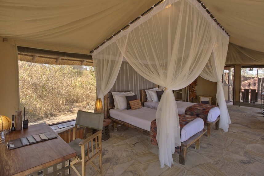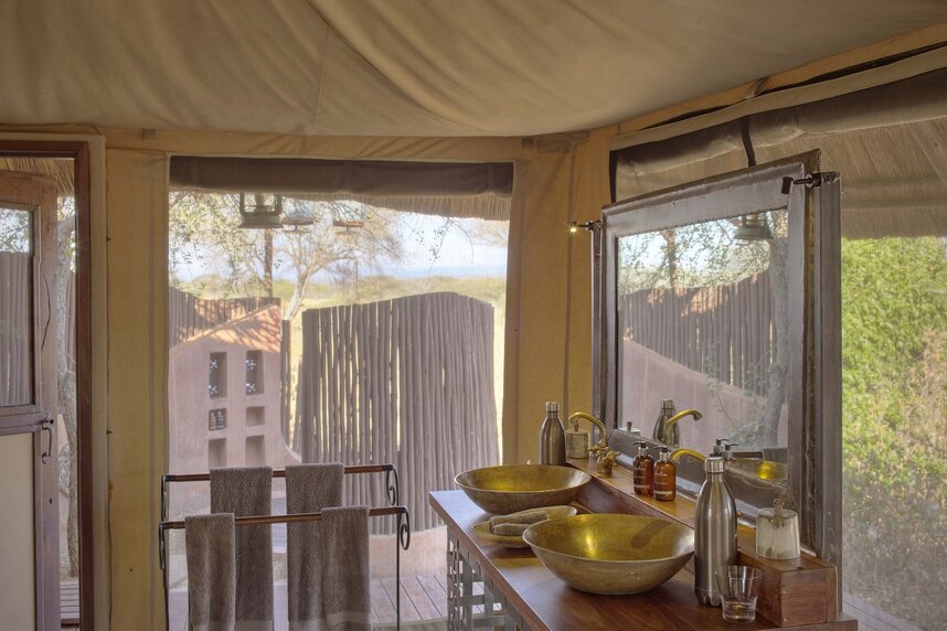 Oliver's Camp liegt im südlichen Teil des Tangire Nationalparks. Umgeben von einer spektakulären Landschaft befindet sich das Camp nahe des Silale Sumpfes und bietet einen hervorragenden Blick auf die Flussauen der Minyonyo Pools. Ohne übertriebenen Luxus wird hier das authentische Afrikaerlebnis im Sinne der ersten Abenteurer zelebriert. Im gänzlich hölzernen Speisesaal erwarten Sie hausgemachte Köstlichkeiten mit ausgesuchten Zutaten aus der Region. Am Abend wird ein Lagerfeuer angezündet, an dem Sie sich mit anderen Gästen über Ihre Erlebnisse des Tages austauschen können. Das Camp besteht aus zwei Einheiten: Das bisher als eigenständiges Little Olivers' bekannte Camp befindet sich etwa einen Kilometer vom hauptcamp entfernt und besteht aus nur fünf exklusiven Zelten. Der Hauptbereich besteht aus einem offenen Bereich mit Strohdach, ausgestattet mit Ledersessel und Holztischen, und der angrenzende Speisebereich bietet einen großen Esstisch. Dank der Intimität des Camps eignet es sich die kleinere Einheit hervorragend für kleine Gruppen oder Familien, die eine aufregende Safari Erfahrung in Privatsphäre erleben möchten.