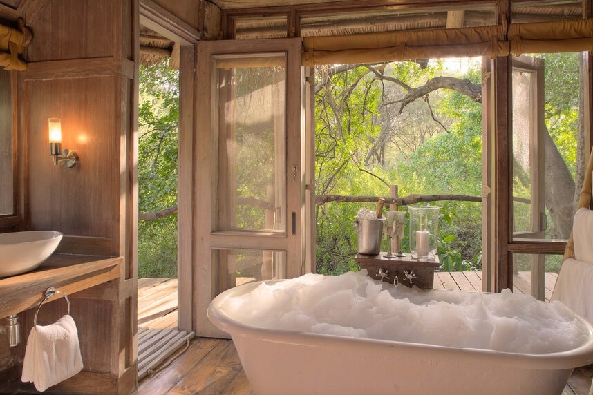 Die zehn großzügigen Baumhaus Suiten vereinen entspannte Eleganz mit Romantik - immer in unmittelbarer Nähe zur Natur, egal ob Sie in Ihrer freistehenden Badewanne relaxen oder die erfrischende Außendusche nutzen. Zwei der Suiten können durch ein Kinderbett für ein Kind unter 16 Jahren erweitert werden.