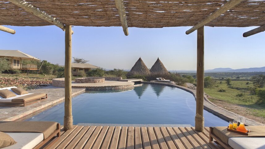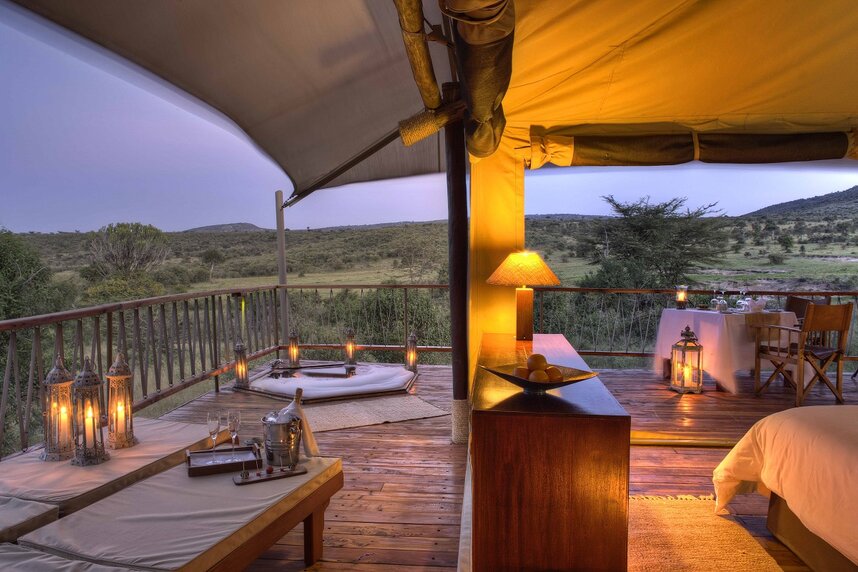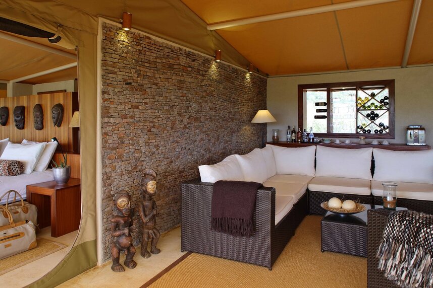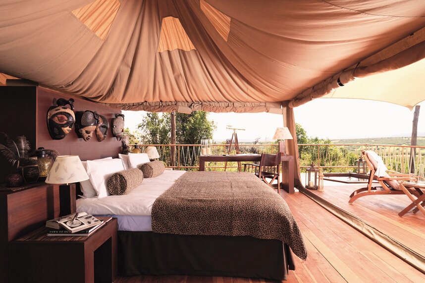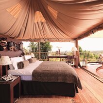 Die Zelt-Suiten sind liebevoll mit afrikanischen Details eingerichtet und verfügen über ein Bad sowie ein 100m² großes Aussichtsdeck. Von hier können Sie hervorragend die Tiere beobachten, die sehr nahe ans Camp herankommen.