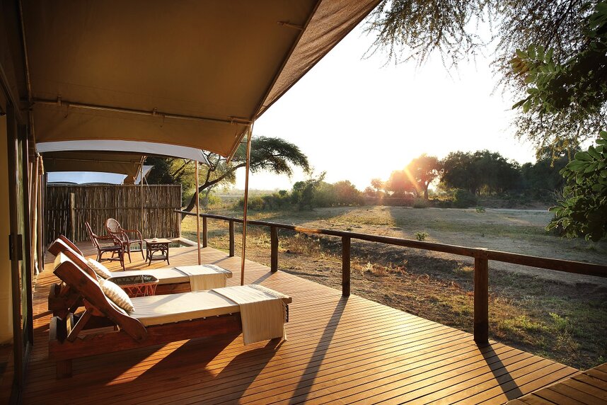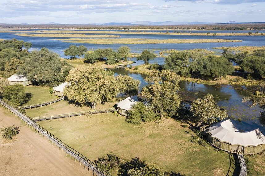 Dort wo einst die historische Ana Tree Lodge stand, wurde das neue Anabezi Tented Camp errichtet. Den Namen verdankt die Unterkunft den Ana Bäumen, die rund um das Camp wachsen und Schatten spenden. Die gelben Schoten, die von den Bäumen fallen locken viele Tiere an, besonders Elefanten sind oft und gern gesehene Gäste. Das Camp liegt nah am Zambezi Fluss und bietet herrliche Blicke auf die von Wasser durchzogenen Grasebenen um den Mushika Fluss und den Zambezi Fluss. Es werden neben Pirschfahrten auch Nachtsafaris, Bootausflüge und Safaris mit dem Kanu oder zu Fuß angeboten. Für Angelfreunde werden Touren organisiert und auch Vogelliebhaber kommen im Park voll auf ihre Kosten. Im Hauptbereich des Camps finden Sie zwei großzügige Aussichtsdecks, jeweils mit Feuerstellen, und etwas abseits davon Pools, in denen sich die Gäste nach einer Pirschfahrt erfrischen können. Am Abend erwarten Sie vorzügliche Menus, die Sie auf den Decks einnehmen können.