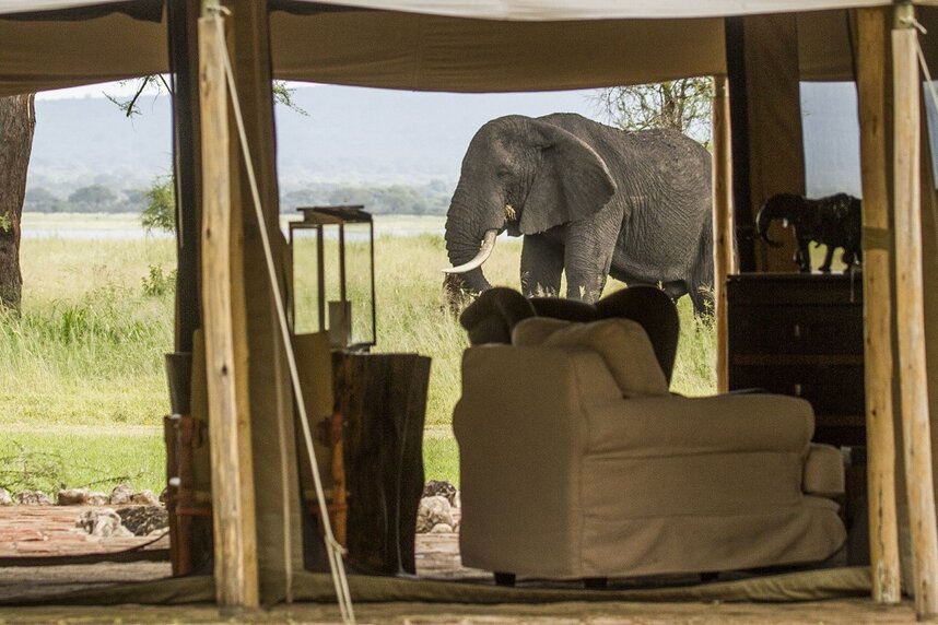 Alle Zelte sind im traditionellen Safaristil gebaut und ausgestattet mit Außendusche und möblierter Veranda.