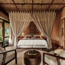 In der Hochebene der Buhoma Region inmitten von gezackten Bergen, Wasserfällen und Seen tief im Bwindi Impenetrable Forest, liegt das luxuriöse Camp von Sanctuary Retreats. Umgeben von grüner Tropenvegetation und fernab des Trubels ist es die einzige Lodge in diesem UNESCO Weltnaturerbe und ein idealer Ausgangspunkt für Touren zu den Gorillas und Vogelbeobachtung. Der Startpunkt für das Gorilla Trekking liegt nur wenige Minuten entfernt. Der Park gilt als eines der reichsten Ökosysteme Afrikas. Neben den Berggorillas gibt es Schimpansen, Colobus-Affen, über 120 Säugetierarten und 348 Vogelarten zu beobachten. Zur Lodge gehören eine Lounge, eine Bar, zwei Essbereiche mit herrlichem Ausblick und ein kleines Spa. Bewundern Sie abends am lodernden Feuer den klaren Sternenhimmel Afrikas. Dank der erhöhten Plattform bietet sich auch die Möglichkeit, das Abendessen unter freiem Himmel einzunehmen.