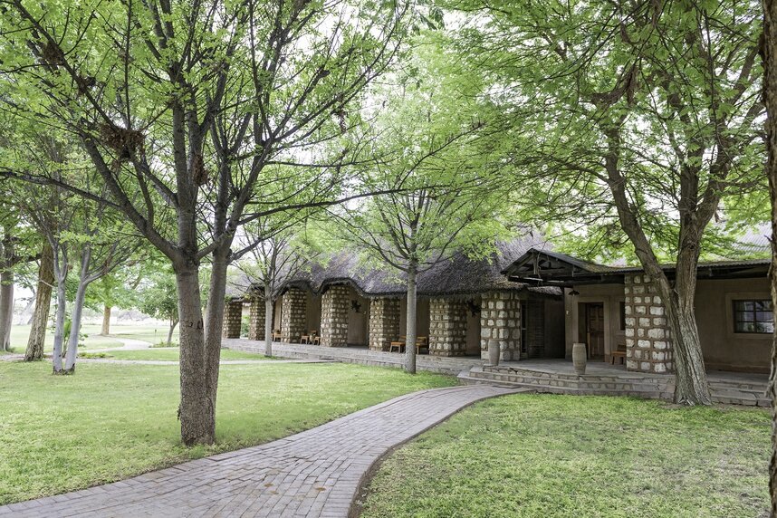 Die 19 Zimmer - darunter 6 Familienzimmer für 2 Erwachsene und 2 Kinder - verfügen über en Suite Badezimmer mit großer Dusche und bieten teilweise einen Blick auf das große Wasserloch.