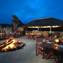 Romantisch am Bushman’s-Fluss liegt die "River Lodge", die zu den schönsten und außergewöhnlichsten Safari-Lodges der Region gehört, und bietet Wohlfühlambiente pur. Das Hauptgebäude der Lodge ist hauptsächlich aus Holz gebaut, spektakulär ist die Terrasse der Lodge, die weit über den Fluss hinaus ragt. Es gibt mehrere Lounges mit Sofa-Ecken und Sitzgruppen, eine Bibliothek und einen Pool. Alle Mahlzeiten und Getränke sind in der Kariega River Lodge inkludiert, das gemeinsame Essen wird im Speisezimmer oder bei der Boma eingenommen.