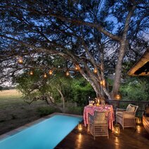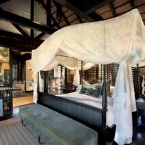 Die elegante "Vlei Lodge" liegt am Ausläufer einer Aue und überblickt eine einzigartige Sumpflandschaft mit Wasserloch am Rande eines Waldes. Lassen Sie sich von der Magie der Wildnis verzaubern, die direkt vom Bett, der Dusche oder Ihrem privaten Erfrischungspool aus zu beobachten ist. Reet, Teakholz und Glas bestimmen die Einrichtung und Optik der Lodge. Im Hauptbereich der Lodge befinden sich eine Lounge und einen Speisebereich, einen offenen Kamin, eine Bar, ein Aussichtsdeck, ein Boma, einen Swimmingpool und eine Galerie mit afrikanischen Kunstgegenständen. Auf Wunsch können alle Speisen auf der privaten Terrasse eingenommen werden.