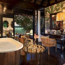 Die nur sechs privaten strohgedeckten Suiten sind aus verschiedenen Hölzern erbaut und mit asiatisch-afrikanischen Elementen eingerichtet. Sie verfügen über En-suite-Badezimmer, Ankleideraum, Erfrischungspool sowie Veranda.