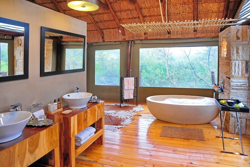 Die luxuriöse "Bayethe Tented Lodge" im Stil eines Safaricamps liegt eingebettet in dichter Vegetation und lässt Ihren Traum einer luxuriösen Safari an der Garden Route wahr werden. Die Lodge besteht aus Steinwänden mit einem reetgedeckten Dach und bietet einen malerischen Blick auf die unberührte Natur. Hier können Sie direkt vom Aussichtsdeck aus Antilopen beim Trinken am Flussufer beobachten und bei Sonnenuntergang mit einem Cocktail anstoßen. Zweimal täglich finden Pirschfahrten im offenen Geländewagen statt. Kommen Sie den "Big Five" auch auf Fußpirschen näher und unternehmen Sie historische Touren.