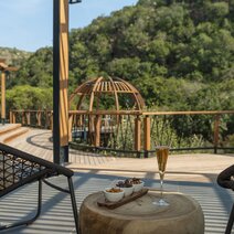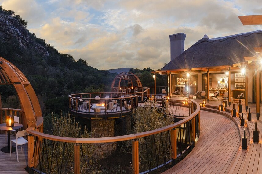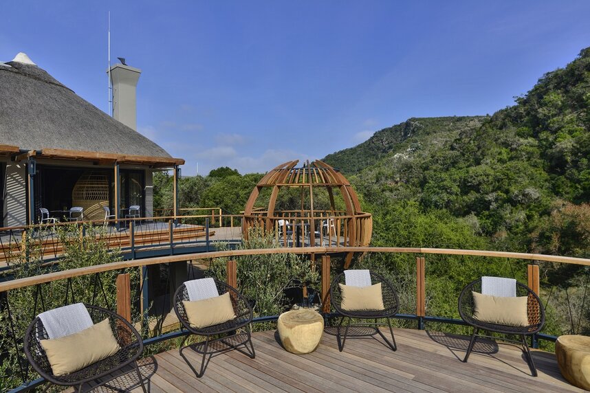 Die elegante "Eagles Crag Lodge" schmiegt sich an spektakuläre Felsformationen. Wer unübertroffenen Komfort, Privatsphäre und aufregende Safari nahe der Garden Route sucht ist hier genau richtig. Täglich begeben Sie sich gemeinsam mit erfahrenen Rangern auf Pirschfahrten im offenen Geländewagen. Das Eagles Crag Spa bietet eine Vielzahl von Behandlungen. Entspannen Sie abends in einer der Lounges, machen Sie es sich vorm Kamin gemütlich und genießen Sie die Aussicht vom Deck, wo sich auch die traditionelle Boma befindet, hier werden abends afrikanische Spezialitäten serviert.