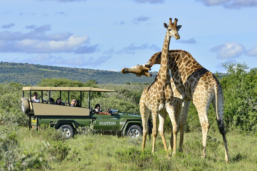 Das Shamwari Game Reserve liegt östlich vom Addo Elephant Park, etwa 80 Kilometer von Port Elizabeth entfernt. Die Fahrt ab Flughafen dauert ca. eine Stunde.