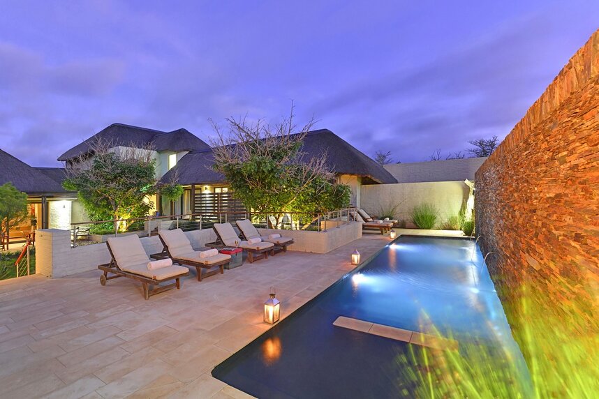 Die Sarili Private Lodge ist besonders gut für Familien mit Kinder geeignet und nur exklusiv für maximal 10 Gäste buchbar. Der beheizte Swimmingpool punktet mit einem Kinderbecken und außerdem gibt es für junge Safari-Urlauber ein großes Angebot an Aktivitäten. Nach einem Tag auf Safari mit eigenem Guide können Sie es sich im Wohnzimmer vor dem Kamin gemütlich machen oder Sie lassen den Tag im Loungebereich Revue passieren. Das große Aussichtsdeck überblickt den Bushman’s River und die weiten Ebenen der Landschaft. Die Einrichtung verschafft ein angenehmes sowie entspanntes Wohngefühl in einer natürlichen Umgebung. Ihr privater Koch kreiert für Sie Speisen nach Wunsch. Auch Spa-Behandlung im eigenen Zimmer sind auf Anfrage buchbar.