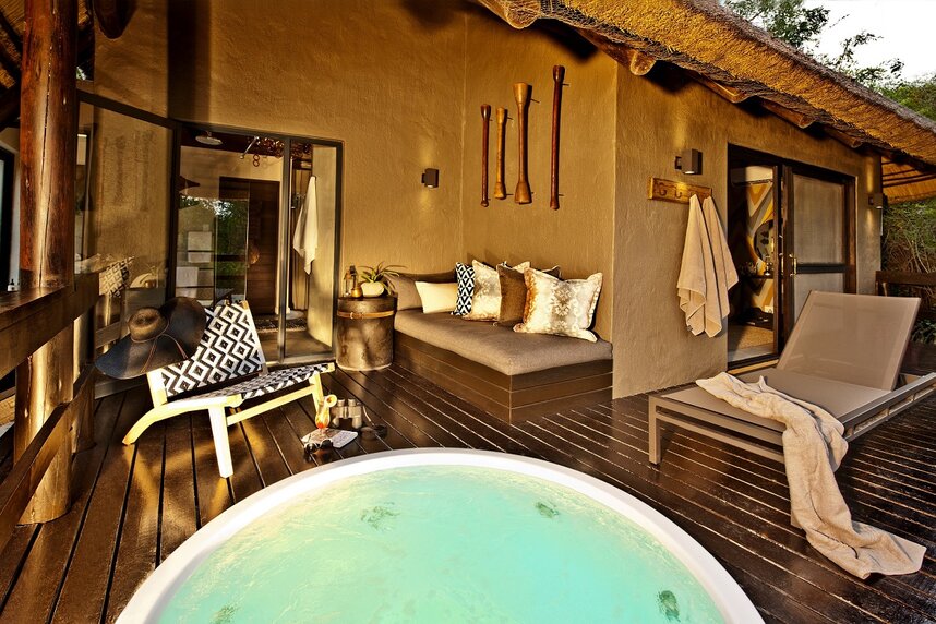 Die nur sechs luxuriösen en-suite-Chalets sind im modernen afrikanischen Design eingerichtet und überblicken das Flussbett. Sie haben alle eine private Veranda, einen beheizten Whirlpool, Außendusche und Klimaanlage.