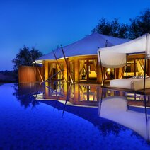 Inmitten der Wüste von Ras Al Khaimah, zwischen dem Ozean auf der einen und dem zerklüfteten Hajar-Gebirge auf der anderen Seite, liegt das edle Villenresort The Ritz-Carlton Ras Al Khaimah – Al Wadi Desert. Diese mondäne Oase in einem etwa 500 Hektar großen Naturreservat zelebriert den ewigen und wilden Charme einer Wüstenlandschaft auf besonders stilvolle Art und Weise. Besonders magisch und stimmungsvoll gestalten sich die Abendstunden in Ihrem Resort: Wie wäre es zum Beispiel mit einem köstlichen Barbecue-Dinner in den Dünen unter dem atemberaubenden Sternenzelt der Wüste? Ein weiterer Höhepunkt des Ritz-Carlton ist das aufwendig gestaltete Spa. In Ihrer Freizeit können Sie die einheimische Flora und Fauna bei einem Spaziergang durch das Naturreservat zusammen mit einem Guide erkunden, die Kunst des Bogenschießens erlernen oder die Falkner bei ihrem traditionsreichen Handwerk bestaunen.