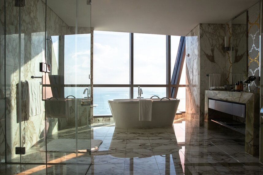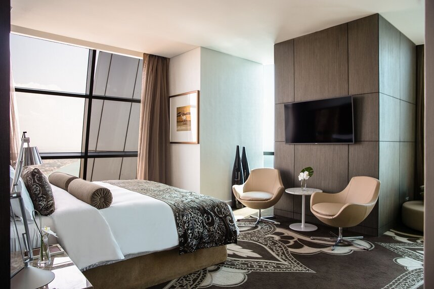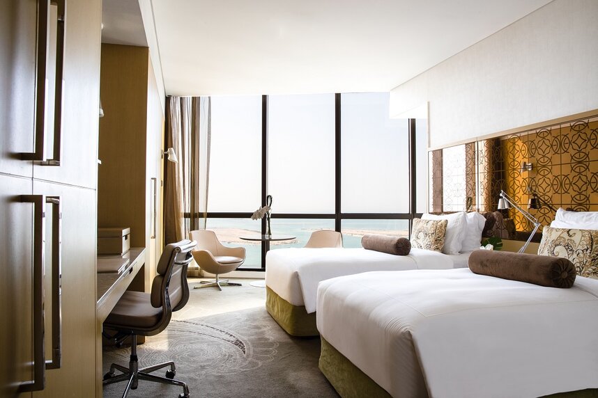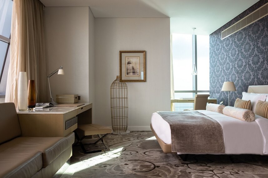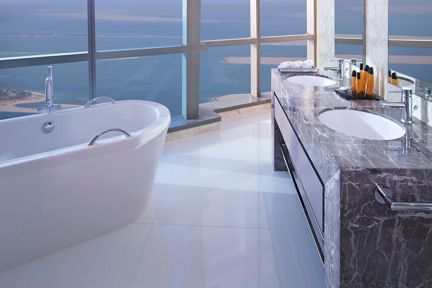 Neben einer komfortablen Ausstattung dominiert ein eleganter und moderner Stil die Zimmer und Suiten des Luxushotels. Ganz besonders empfehlen wir die Zimmer der Kategorie Grand Premier Room with Sea View (60m²) sowie die One Bedroom Suites with Sea View (110m²). Atemberaubender Luxus gipfelt in der prächtigen Royal Etihad Suite (980 m² - 4 Schlafzimmer) als krönender Abschluss in der kompletten 60. Etage inklusive 360°-Blick auf das Meer, die Corniche und die Skyline von Abu Dhabi.