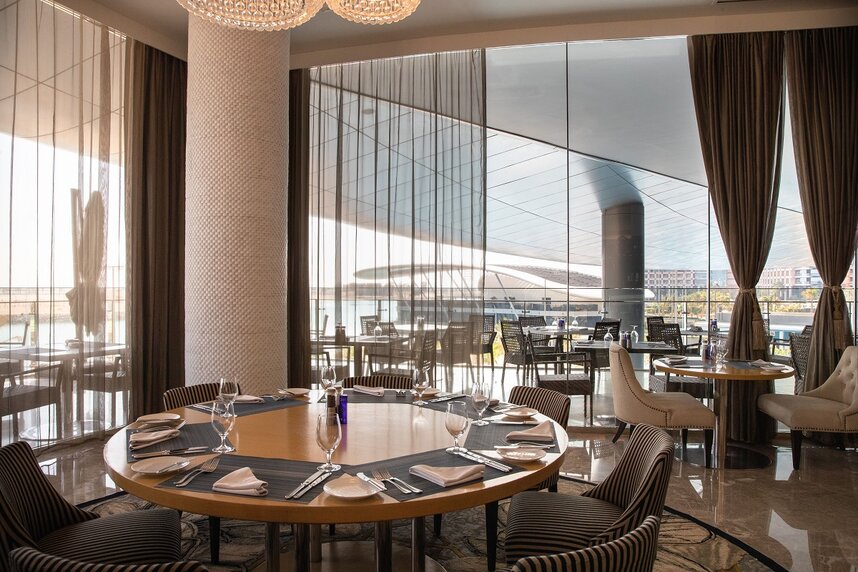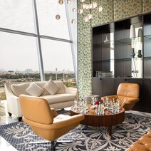 Direkt an der Uferpromenade und Flaniermeile Corniche mit ihren Cafés und Restaurants erheben sich die fünf futuristischen Glastürme der Etihad Towers, die innerhalb kürzester Zeit zu einem spektakulären Wahrzeichen von Abu Dhabi avanciert sind. Während vier der Türme als Büro- und Wohnfläche genutzt werden, ist im zweithöchsten von ihnen das luxuriöse Conrad Abu Dhabi mit seinen 382 Zimmern und Suiten untergebracht. Der Panoramablick auf den Ozean, die vorgelagerten Inseln und den Emirates Palace wird Ihnen den Atem rauben. Neben 3 Outdoor-Swimmingpools verfügt das Hotel auch über einen eigenen kleinen Strandabschnitt, der zu einem ausgiebigen Sonnenbad einlädt. Beste Einkaufsmöglichkeiten in unmittelbarer Nähe bietet die zu den Etihad Towers gehörende "Avenue" – hier ist nahezu jeder namhafte Designer vertreten. Die Restaurants des Hotels zählen zu den besten Adressen, die Abu Dhabi zu bieten hat: Mehrfach ausgezeichnet ist zum Beispiel das "Li Beirut" (libanesisch), das "Tori No Su" (japanisch) und das "SOLE" (italienisch).