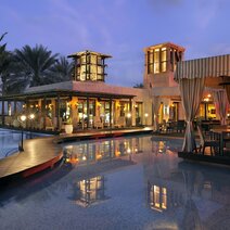 Das One&Only Royal Mirage ist eine Hommage an traditionelle, arabische Architektur und spiegelt die ganze Pracht der Emirate in traumhafter Lage wider. Abwechslungsreiche, kulinarische Höhepunkte erwarten Sie in insgesamt acht Restaurants, wobei das Restaurant "The Dining Room" ausschließlich den Gästen des "Residence & Spa" vorbehalten ist. Mediterrane Gerichte im "Olives", marokkanische Kreationen im "Tagine", französische Spitzenküche im "Celebrities" oder asiatische Köstlichkeiten im "Eauzone" – Sie haben die Wahl. Die "Rooftop Terrace" und der stilvolle Nachtclub "Kasbar" laden zu einem Drink ein. Der hoteleigene Strand zählt zu den schönsten in Dubai. Im One&Only Spa mit orientalischem Hammam finden Körper und Geist zu neuer Balance. Sportbegeisterte kommen im Fitnesscenter, auf dem Tennisplatz oder bei einer Partie Beachvolleyball auf ihre Kosten. Golfer erreichen den Emirates Golf Club mit seinen zwei 18-Loch-Meisterschaftsplätzen innerhalb weniger Fahrminuten.