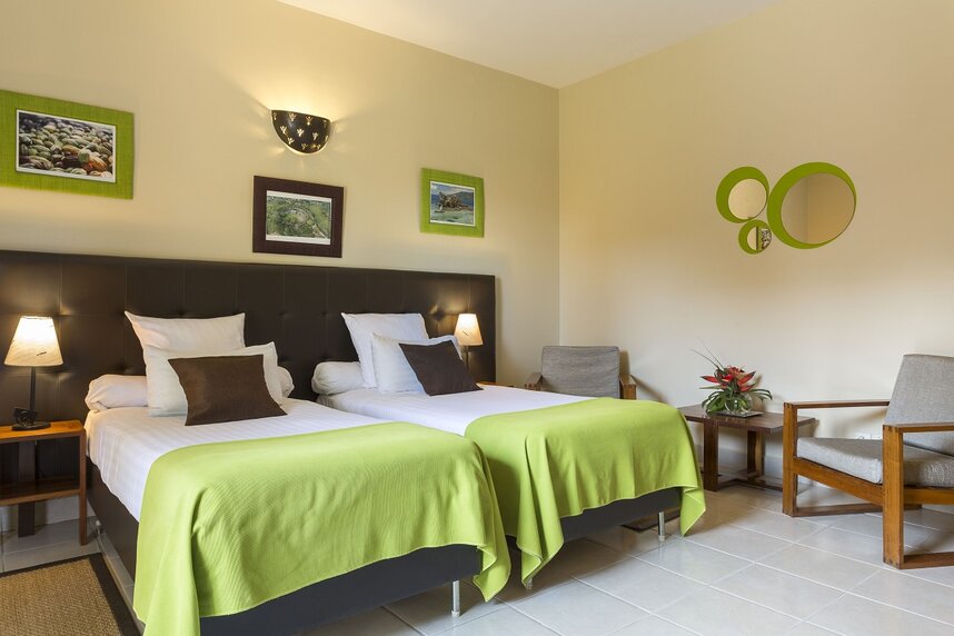 Die Anlage bietet Ihnen einen beheizten Pool, einen Wellnessbereich sowie einen Fitnessbereich wo Sie sich auspowern oder entspannen können. Das Hotel verfügt über 46 Zimmer, welche im bewaldeten Park gelegen sind und nach allen internationalen Normen ausgestattet sind. Hier werden Ihnen perfekte lokale Traditionen und Moderne in vier Zimmerkategorien dargeboten. Die Zimmer sind klimatisiert und verfügen über eine Sitzecke, extra lange Betten und einen Kamin. Alle Zimmer begeistern mit einem Blick auf den Garten, den Sie entweder von Ihrem Balkon oder Ihrer Terrasse aus genießen können.