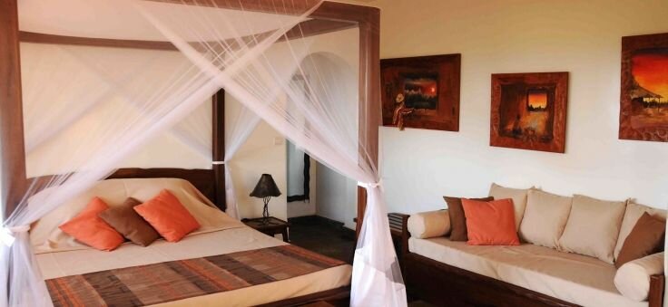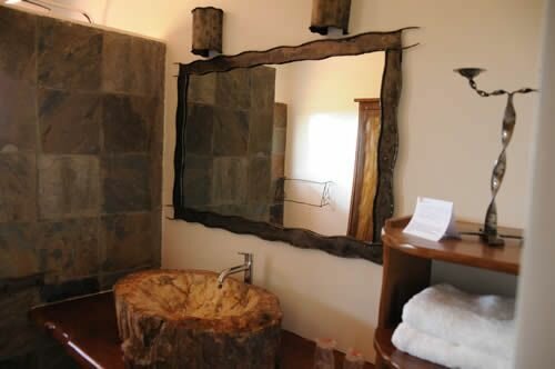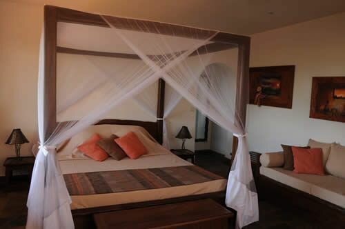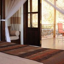 Die 17 Bungalows (55m²) der Lodge sind mit einer charmanten, rustikalen Einrichtung ausgestattet. Die traditionellen Holzschnitzereien und Metallverzierungen wurden von lokalen Künstlern und Handwerkern geformt. und bieten eine Sitzecke, Bad mit Dusche sowie eine große möblierte Terrasse mit einem außergewöhnlichen Ausblick.