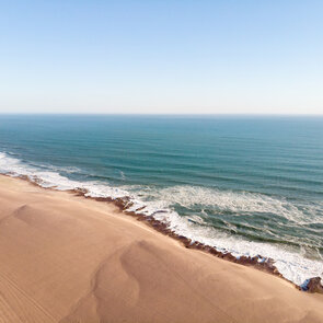 Im niederschlagsarmen Damaraland finden sich unendliche Horizonte, zerklüftete Felsformationen, ausgetrocknete Flussbetten in tiefen Schluchten und eine beeindruckende Tierwelt. Zahlreiche Tierarten haben sich an die karge Landschaft angepasst, allen voran die berühmten Wüstenelefanten. Die Skelettküste, der größte “Schiffsfriedhof“ der Welt, präsentiert sich den Besuchern mit rauen Küsten, einer der zahlreichsten Robbenkolonien weltweit und tiefen Canyons.