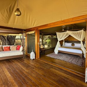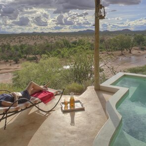 Der Samburu Park beeindruckt durch seine abwechslungsreiche Landschaft. Unzählige Schirmakazien prägen diesen Park, der vom Ewaso Ng`iro Fluss durchquert wird. Dicht bewachsene Uferzonen, angrenzendes Buschland und die nahe, trockene Savanne bilden den idealen Lebensraum für viele unterschiedliche Tierarten. Neben Elefanten, Löwen, Geparden und Leoparden gibt es im Samburu einige Arten, die nur hier vorkommen, wie das schmalgestreifte Grevy-Zebra, die elegante Gerenuk-Antilope und die herrlichen Netzgiraffen.