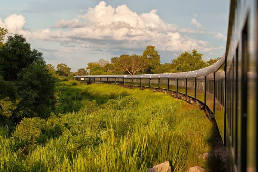 Diese exklusive Reise startet abends (Abfahrt 18 Uhr) in Pretoria und geht weiter Richtung Norden, wo der Zug Warmbaths und Nylstroom passiert.