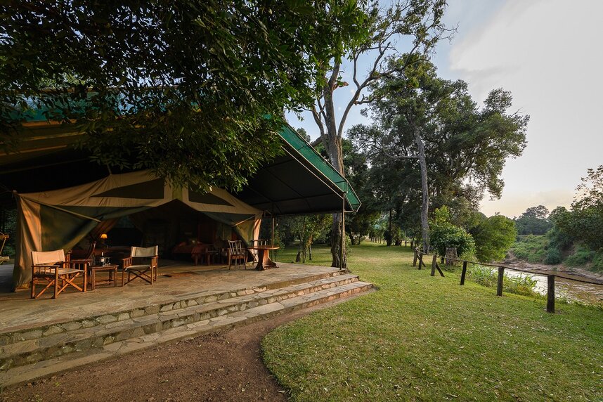Die 17 en-suite Zelte des "Little Governors’ Camp" liegen jenseits des Mara Flusses und sind nur mit dem Boot und einem anschließenden kleinen Fußmarsch zu erreichen. Authentische Safarierlebnisse sind hier garantiert. Das Dinner bei Kerzenlicht inmitten der romantischen Buschkulisse bleibt lange in Erinnerung.