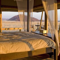 Das Wolwedans Boulders Camp ist ein Kleinod im Süden des Reservats, am Fuße eines großen Granitfelsens. Etwa 45 Kilometer vom Wolwedans Village entfernt ist das Camp der ideale Ausgangspunkt, um die berühmte Namib zu erkunden. Es wurde harmonisch in die Landschaft eingepasst und besticht durch eine ebenso klare wie geschmackvolle Einrichtung. Das Camp ist besonders edel und bietet nur fünf charmante Zelte mit Bad und Sonnendeck. Es verfügt über einen Speisebereich, Lounge und Bibliothek. Der Pool mit Panoramablick, die großartige Küche und Panoramafahrten sowie Wanderungen durch die menschenleere Ebene machen Ihren Aufenthalt zum Genuss. Oder Sie erkunden Sie diese großartige Landschaft mit den E-Bikes.
