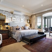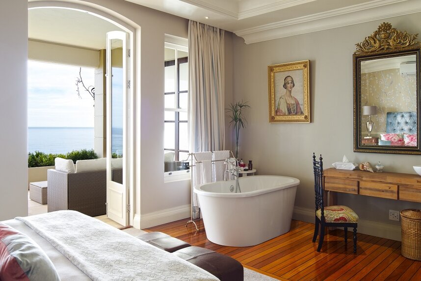 Mit privaten Terrassen, attraktivem Dekor, einem schönen Garten mit Swimmingpool und sehr persönlichem Service bietet Ihnen die Residenz den idealen Rückzugsort, um nach einem erlebnisreichen Tag zu entspannen und den atemberaubenden Sonnenuntergang zu genießen. Die geräumige Villa bietet nur fünf exklusive Suiten und ein spektakuläres Penthouse mit unvergleichlichem Blick auf die Gebirgskette der Zwölf Apostel am Atlantischen Ozean. Der Gast ist hier König und kann sich wie zu Hause fühlen, in einer Umgebung, in der elegante europäische Opulenz auf schicke afrikanische Kultur trifft.