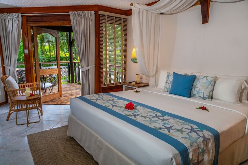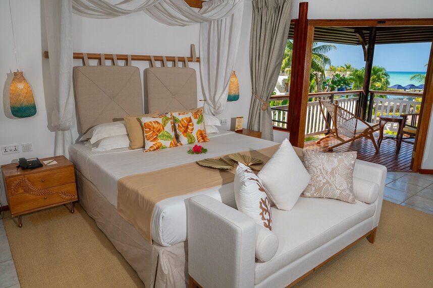 Das Resort verfügt über 50 Zimmer sowie 6 Appartements zur Selbstversorgung. Die Anfang 2025 neu renovierten Standard und Superior Zimmer liegen in traditionellen Pfahlbauten links und rechts des Haupthauses mit Blick in den tropischen Garten bzw. teilweise auf das Meer. Die Deluxe Zimmer befinden sich in den moderneren Gebäuden, welche etwas näher am Meer liegen. Von Ihrer Terrasse sind es nur ein paar Meter durch den feinen Sand, um das Meer zu erreichen. Die Appartements für Selbstversorger liegen im Garten des Resorts und verfügen über eine Lounge sowie eine vollausgestattete Küche.
