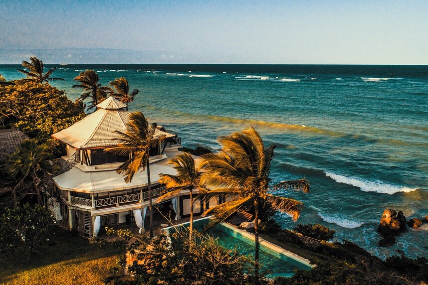 Diani Beach an der Südküste Kenias ist ein wahrer Traum für Sonnenanbeter und Wassersportler: Schneeweißer Sand, und 15 bis 20 Meter breite Strände. Hier befinden sich die luxuriösen Alfajiri Villas, nur etwa eine Stunde vom Flughafen Mombasa entfernt. Mit einem Privatflugzeug gelangt man innerhalb von fünf Minuten zum benachbarten Ukunda-Flugplatz. Genauso zauberhaft wie die Lage ist auch das Resort selbst: Das Anwesen besteht aus drei sehr hochwertigen, privat geführten Villen mit sensationellem Blick auf den Indischen Ozean.