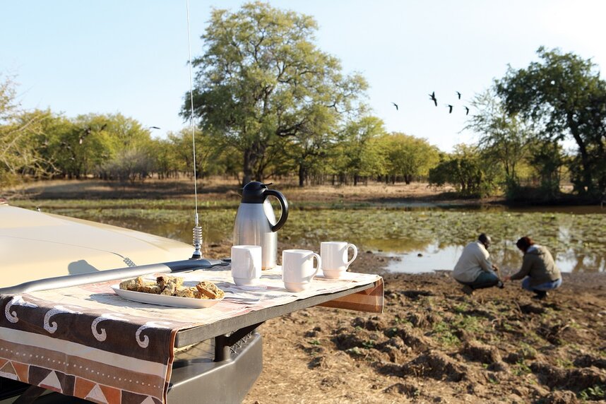 Per Sportflugzeug ab Lusaka oder Livingstone in ca. 70 Minuten zum Jeki Airstrip in Lower Zambezi, von dort dauert die Fahrt Geländefahrzeug zum Camp ca. 40 Minuten.