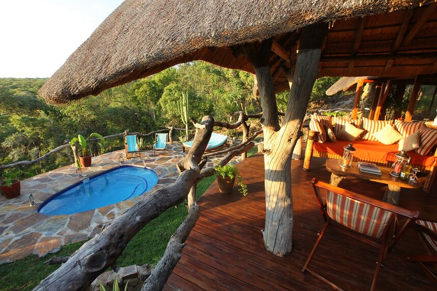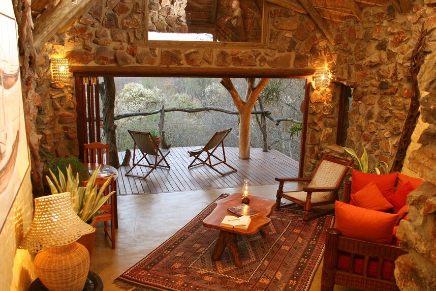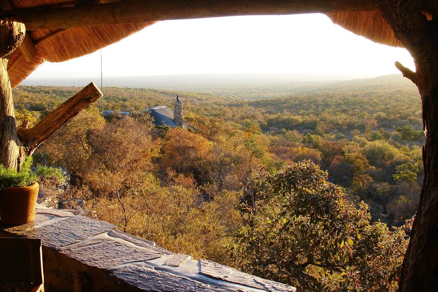 Im malariafreien Waterberg Gebiet befindet sich die privat geführte Lodge Ant\'s Hill. Am Rand einer Schlucht erbaut, besticht die "Ant’s Hill Lodge" mit einer atemberaubenden Aussicht, elegantem, afrikanischem Dekor und entspannter Atmosphäre. Im Hauptgebäude befinden sich großzügig angelegt verschiedene Sitzmöglichkeiten, eine Bar und dem Esszimmer, beides mit offenem Kamin. Auf der weiten offenen Terrasse wird das Frühstück serviert. Von hier bietet sich freie Sicht auf die Wasserstelle, die von vielen Tieren regelmäßig besucht wird. Zur Lodge gehört außerdem ein in den Fels geschlagener Pool, eine Lounge und ein Speisebereich.