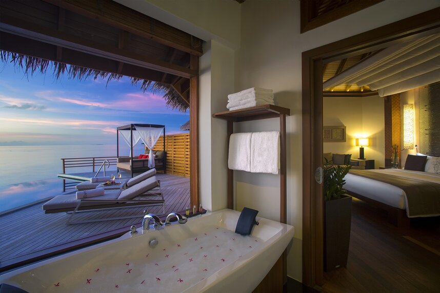 Direkt am Strand mit viel Privatsphäre liegen die Deluxe Villen (89 m²), Baros Villen (103 m²), Baros Pool Villen (134 m²) und Baros Suiten (200 m²). Die hufeisenförmig angeordneten Water Villen (92 m²), mit Sonnendeck und einer Treppe, die direkt ins Meer führt, liegen malerisch in der Lagune. Etwas komfortabler und größer sind die Water Pool Villen (126m²), die Ihnen zusätzlich einen eigenen Pool bieten. Das Herzstück des Resorts ist die Baros Residenz (268 m²) mit großem, eigenen Swimmingpool, die ultimative Privatsphäre an einem besonders makellos schönen Teil der Insel garantiert.