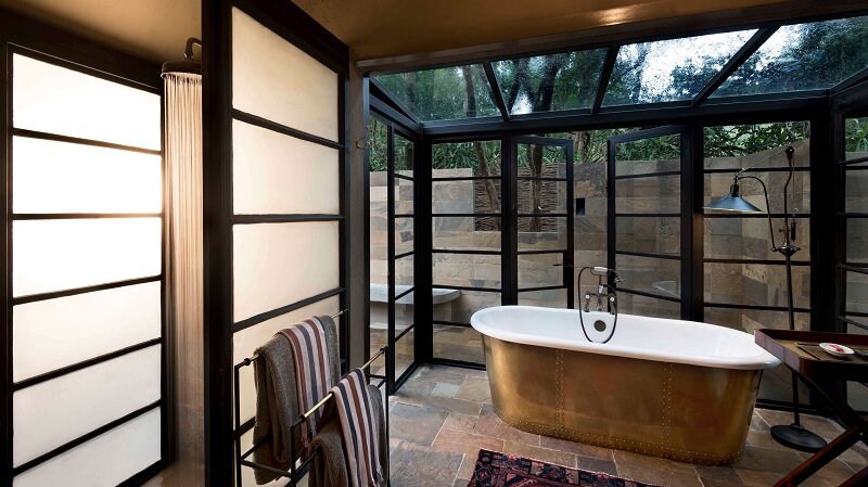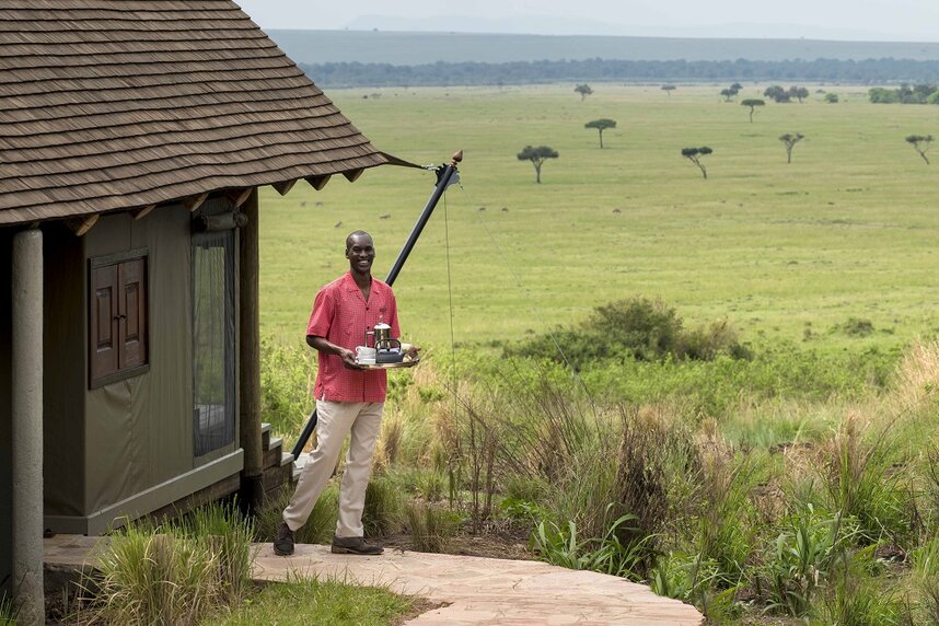 Alle Zelte verfügen über ein Bad mit Innendusche und eine eigene Veranda, von der Sie den traumhaften Blick in die weite Ebene genießen können. Jedes Zelt bietet zudem einen privaten Butlerservice.