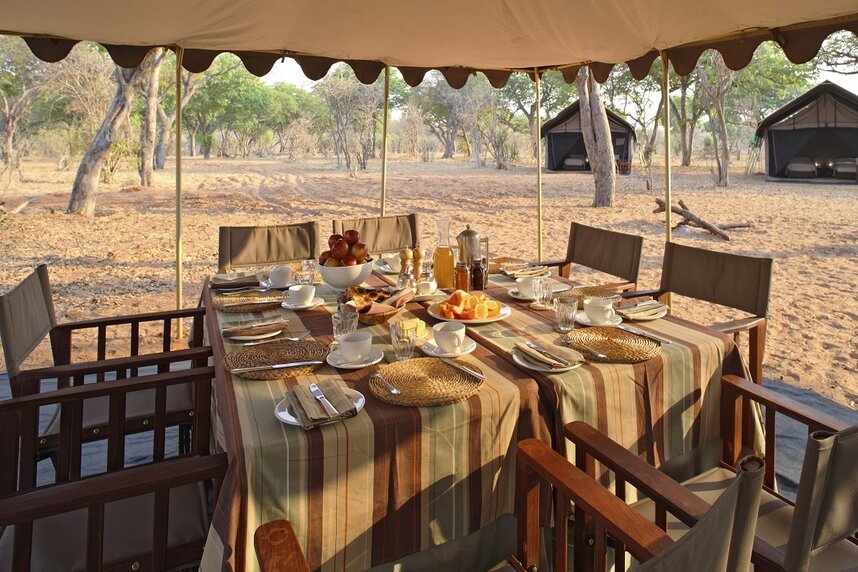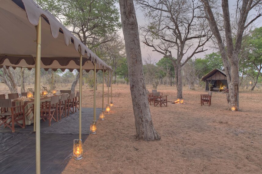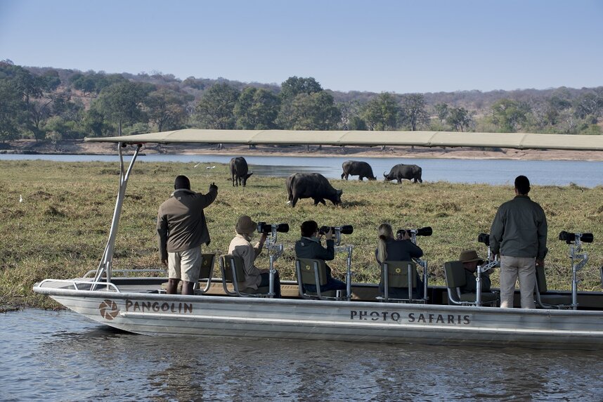 Der Chobe Nationalpark am gleichnamigen Fluss ist ein Elefantenparadies, in den Flussauen und Wäldern finden die grauen Riesen ganzjährig ausreichend Nahrung und Wasser, sodass hier immer große Herden anzutreffen sind. Neben den luxuriösen feststehenden Lodges hat andBeyond im Chobe und Savute Nationalpark die Lizenz für die etwas rustikaleren Under Canvas Camps, die alle fünf bis sechs Tage an verschiedenen Plätzen der beiden Nationalparks errichtet werden. Sie sind nicht eingezäunt, also ganz nah an den Geschehnissen im afrikanischen Busch. Die Mahlzeiten werden im Speisezelt mit Lagerfeuerplatz oder bei gutem Wetter unter dem freien Sternhimmel eingenommen. Beide Camps bieten Pirschfahrten an, im Chobe Under Canvas stehen zusätzlich Bootausflüge auf dem Programm und es werden mehrtägige Fotosafaris angeboten.