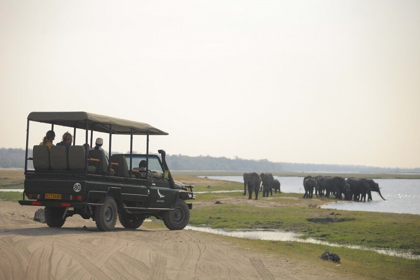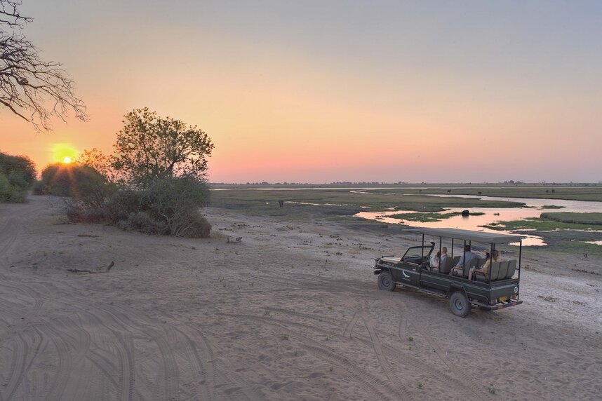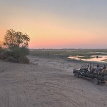 Anreise in 1,5 Stunden vom Flughafen Kasane im Allradfahrzeug zum Camp.