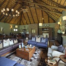 Die Zuka Lodgeliegt zwischen zahlreichen bewaldeten Hügeln an einem Wasserloch, das rund um die Uhr von vielen Wildtieren besucht wird. Den Mittelpunkt der Lodge bilden zwei Häuschen mit Reetdach, das größere davon beherbergt die Lounge und den Essbereich. Die Speisen werden in einer interaktiven Küche zubereitet, in der die Gäste dem Koch zusehen und eigene Ideen einbringen können. Serviert wird am großen Esstisch oder auch im Freien. Die geräumige Terrasse lädt dazu ein, entspannt zurückgelehnt die Wildtiere am Wasserloch zu beobachten. Den Abend können Sie gemütlich im Feuerschein in der traditionellen Boma ausklingen lassen. Auf dem Gelände gibt es außerdem einen Pool, in dem Sie sich zwischen den Pirschfahrten erfrischen können.