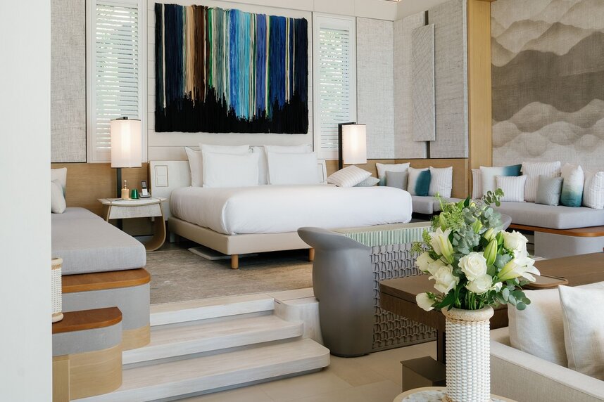 Das im Dezember 2024 neu eröffnete Cheval Blanc Seychelles präsentiert sich wie eine Szene auf einer tropischen Postkarte, die das reine Weiß der feinen Sandstrände, eingerahmt von Kokospalmen, und den türkisfarbenen Indischen Ozeans widerspiegelt. Inspiriert von der Seele der Insel und durchdrungen von einer tropischen Essenz, zelebriert der weltberühmte Architekt Jean-Michel Gathy die grüne Schönheit in jedem Detail, jedem Material und allen Kunstwerken. Das Haus verfügt über eine Sammlung kostbarer, erlesener Kunstwerke, die den Geist von Cheval Blanc verkörpern.