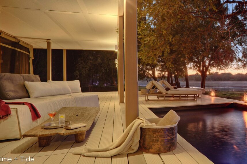 Das elegante Safari Camp von Time + Tide setzt in Sambia neue Maßstäbe in puncto Exklusivität, Service und Kulinarik. Es liegt inmitten einer zauberhaften Naturkulisse, direkt am Ufer des Luangwa River. Erkunden Sie die tierreiche Umgebung auf Pirschfahrten, Buschwanderungen oder mit dem Boot. Der Stil des luxuriösen Camps kombiniert moderne Elemente mit lokalen Materialien. Hochwertige Kulinarik wird im Speisebereich und in der gemütlichen Lounge serviert. An der Feuerstelle oder der Bar lassen Sie den Abend ausklingen. Für entspannte Momente sorgt das Busch Spa.