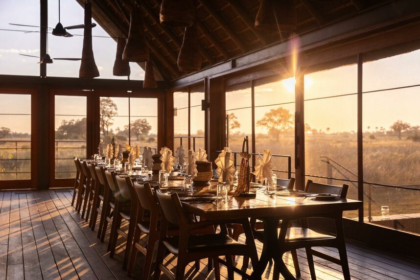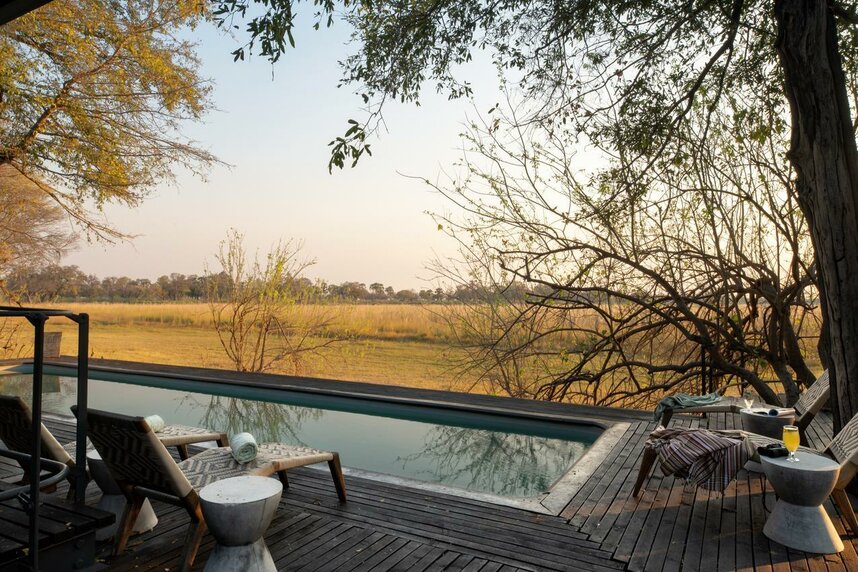 Chitabe liegt in einer besonders reizvollen Landschaft am Rande des Okavango Deltas mit Auen, Wasserwegen sowie trockenen Akazien und Mopanewäldern. Das Gebiet lockt eine Fülle von Tieren an und ist eine der wenigen Regionen, in denen Sie die seltenen Wildhunde beobachten können. Das Haupthaus ist über Holzstege mit den Gästezelten verbunden. Neben Restaurant und Lounge lädt abends die gut ausgestattete Bar, die aus einem einzigen Baumstamm gehauen wurde, zum Sundowner ein. Ebenfalls im Hauptgebäude befindet sich ein kleiner Pool mit toller Sicht auf die Ebenen vor dem Camp, sowie eine Feuerstelle.