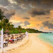 Am südwestlichen Ende des Süd Ari Atolls, traumhaft eingebettet in eine türkisfarbene Lagune, erstreckt sich das edle Conrad Maldives auf die beiden Inseln Rangalifinolhu und Rangali - verbunden durch eine 500m lange Brücke. Nur 30 Minuten per Wasserflugzeug entfernt von der Hauptinsel Mahé offenbart sich Ihnen hier die atemberaubende Schönheit eines ewigen Paradieses. Geschickt kombiniert Hiltons Nobelmarke Conrad modernen Stil und Komfort mit authentischem Inselcharme und sorgt somit für eine absolute Wohlfühlatmosphäre. Das Resort wurde in den letzten drei Jahren umfassend renoviert und mit außergewöhnlicher Liebe zum Detail gestaltet. In der mehrfach ausgezeichneten Hotelanlage inmitten einer gigantischen Lagune mit eigenem Hausriff genießen anspruchsvolle Gäste neben "Barfuß-Luxus" stets höchsten Komfort und hervorragenden Service. 10 Restaurants und Bars lassen kulinarisch keinerlei Wünsche offen. Ein besonderes Highlight ist das gläserne Unterwasser-Restaurant "Ithaa". Das hochmoderne Spa, das in offenen Overwater-Bungalows mit Glasboden untergebracht ist, schenkt Ihnen Momente purer Entspannung und Regeneration. Wer schon immer einmal Seite an Seite mit einem Walhai schnorcheln wollte, kommt in den Gewässern rund um das Resort seinem Traum ganz nahe. Das Süd Ari Atoll ist der perfekte Ort für eine Begegnung mit diesen sanften Giganten der Meere.