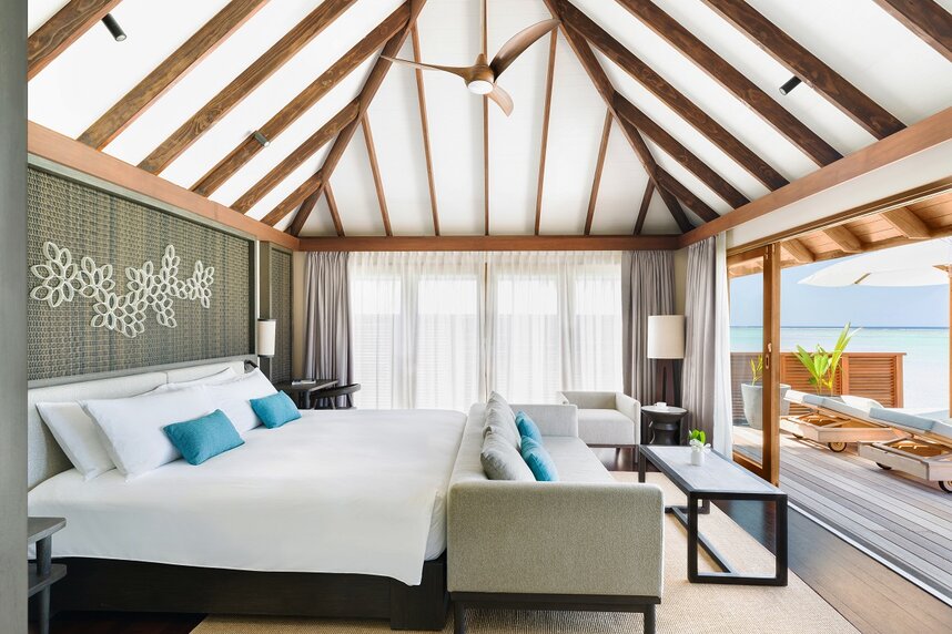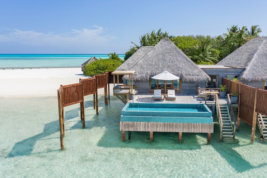 Die luxuriösen und modern designten Strand- und Wasservillen mit elegantem Innen- und Außenbereich sind auf die beiden Inseln Rangalifinolhu und Rangali verteilt. Fast jede Villa und Suite besitzt einen privaten Swimmingpool und Ausblick auf den indischen Ozean. Die Badezimmer sind entweder mit Badepavillons im Freien oder Badewannen mit spektakulärem Meerblick ausgestattet. Jedes Zimmer verfügt über eine Nespresso-Kaffeemaschine, einen Kühlschrank mit Minibar und zwei kostenfreien Flaschen Wasser pro Tag.