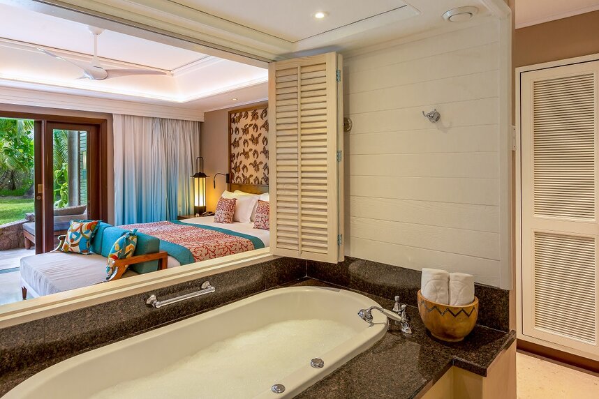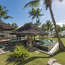 Das "Leading Hotel of the World" liegt im Nordwesten der Insel Praslin inmitten einer wunderschönen, tropischen Umgebung und grenzt an gleich drei traumhafte Strände. Schwimmen Sie an der Petite Anse Kerlan, schlendern Sie auf weißem Sand an der Grande Anse Kerlan und erleben Sie die Seychellen wie aus dem Bilderbuch an der Anse Georgette. Drei Restaurants sorgen für Gaumenfreuden: Das Hauptrestaurant "The Legend" schmiegt sich an einen Hang mit herrlichem Meerblick, "The Nest" thront über dem Indischen Ozean und kredenzt Ihnen feinste Spezialitäten aus dem Meer. Das "The Diva" mit Blick über den herausragenden 18-Loch Championship Golfplatz verwöhnt mit französisch inspirierten Menüs während das Strandrestaurant "Takamaka" tagsüber Snacks und Getränke serviert. Fünf Bars, vier Boutiquen, ein Pro-Shop, ein Eco-Pavillion, ein großer Swimmingpool, der kaskadenartig über drei Ebenen bis zum Meer fließt und ein Kids Club für Kinder von vier bis 11 Jahren ergänzen das Angebot. Das "U Spa" lädt mit sieben Behandlungsräumen, Sauna, Dampfbad und Jacuzzi zum Wohlfühlen ein.