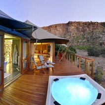 Das malariafreie, 58.000 Hektar große Sanbona Wildlife Reserve liegt in der Kleinen Karoo, circa drei Stunden von Kapstadt entfernt. Die einzigartige Flora der Karoo, die Felsmalereien der San sowie das faszinierende Tierreich garantieren ein Erlebnis der besonderen Art. Ein ganz besonderer Höhepunkt sind die freilaufenden, weißen Löwen des Reservats. Diese und die "Big Five" können Sie mit etwas Glück bei Pirschfahrten oder Wanderungen durch das Naturschutzgebiet entdecken. verwöhnen lassen. Das Luxuszeltcamp "Dwyka Tented Lodge" ist umgeben von imposanten Bergen und besticht durch rustikales Ambiente. Eine Lounge mit Kamin und TV und ein geräumiges Esszimmer mit Feuerstelle laden zum Verweilen ein, ein Souvenirladen, ein Weinkeller und ein offener Essbereich im Freien stehen ebenfalls zur Verfügung.