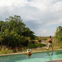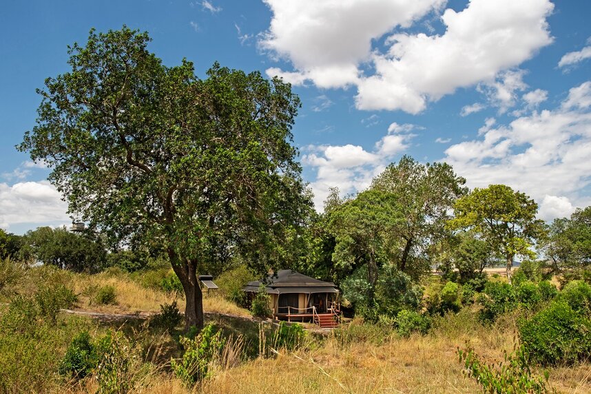 Direkt am Ufer des namensgebenden Sand Rivers, an der Grenze zu Tansania, erinnert das Camp an die luxuriöse Kolonialzeit der 1920er Jahre. Besonders bekannt ist das Gebiet für seine Wildkatzen wie Leopard, Löwe und Gepard. Ein besonderes Highlight sind auch die ankommenden Herden der Migration. Das Camp ist zweigeteilt, die beiden Sektionen (zehn und sechs Zelte) liegen in Gehweite, jedes verfügt über ein komfortables Speisezelt, eine Bibliothek, ein Billardzimmer sowie eine Lounge. Der Swimmingpool befindet sich bei der Rezeption, hier gibt es kostenfreies WLAN.