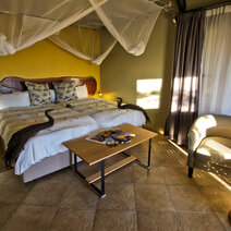 Angrenzend and den Etosha Nationalpark finden Sie die Safarihoek Lodge. Sie ist auf einem Hügel mit Blick auf die darunter liegende Landschaft gelegen und präsentiert sich als stilvoller Ort in der fesselnden Savanne in Norden Namibias. Zu den zentralen Einrichtungen der Lodge zählt ein Swimmingpool mit 180-Grad-Aussicht auf die Savanne sowie ein doppelstöckiges Hide, welches sich als optimaler Ort eignet, um einzigartige Fotomomente einzufangen. Des Weiteren finden Sie in der Mitte der Safarihoek Lodge einen großen Aufenthaltsraum, einen Weinkeller, einen Essbereich, eine Bar, einen kleinen Souvenirladen sowie eine gemütliche Sitzecke im Freien mit abendlichen Lagerfeuern.