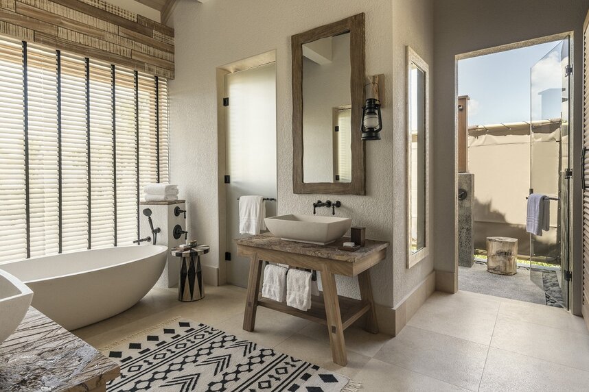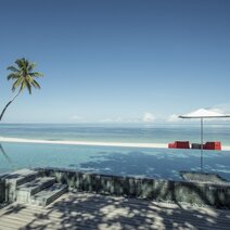 Alle 71 Suiten und Villen verfügen über einen privaten Pool. Besonders schick präsentieren sich die großzügigen Sunset Beach Suiten direkt am Strand (105 m²). Für Familien bietet sich zum Beispiel die elegante Desroches Suite (233 m²) mit 2 Schlafzimmern an.