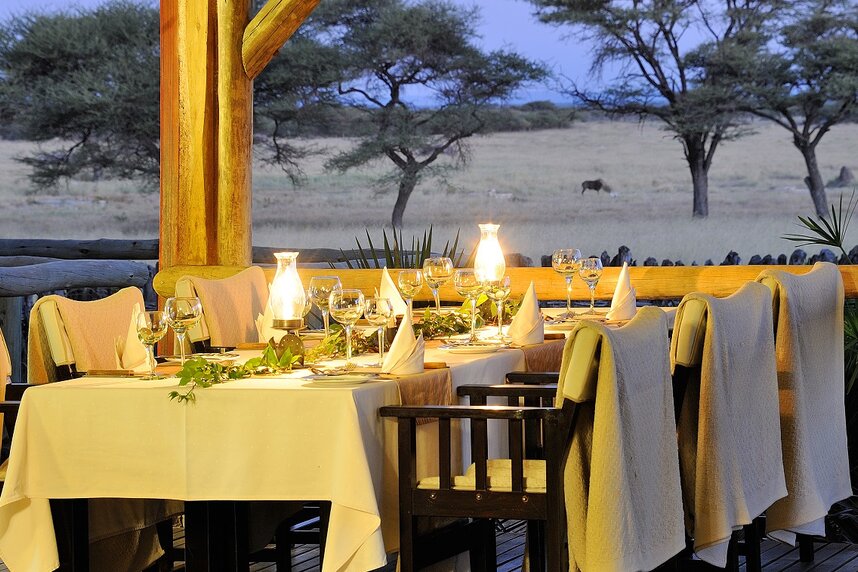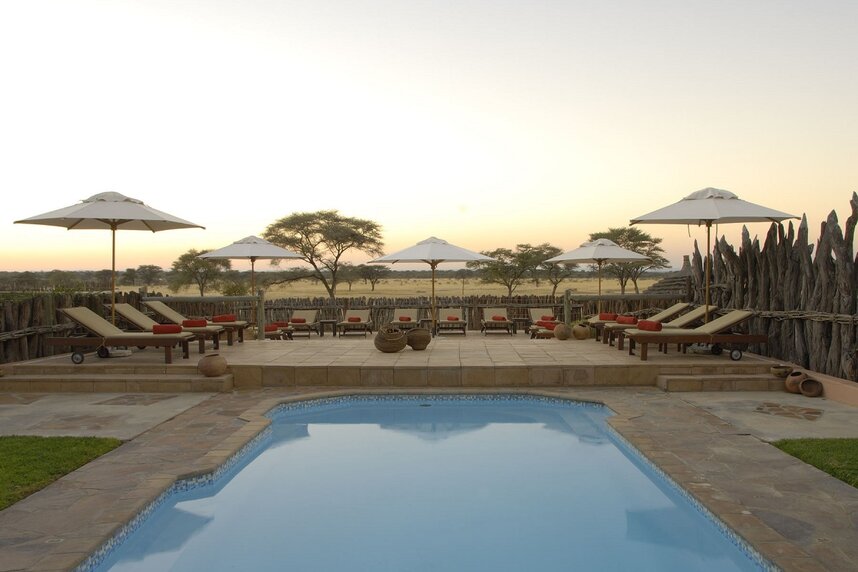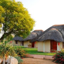 Westlich vom Waterberg Plateau National Park befindet sich in der Ruhe und Stille der namibischen Savanne die Frans Indongo Lodge. Die Unterkunft eignet sich hervorragend als Zwischenstopp auf Reisen zwischen der Hauptstadt Windhoek und dem nördlich gelegenen Etosha-Nationalpark oder dem Caprivi. Zu den zentralen Einrichtungen des Camps zählen ein Restaurant mit Bar, Sonnendeck mit Swimmingpool, an welchem Sie entspannen und eine Reihe von Wüstentieren beobachten können, die sich gerne an der nahe gelegenen, nachts beleuchteten Wasserstelle aufhalten.