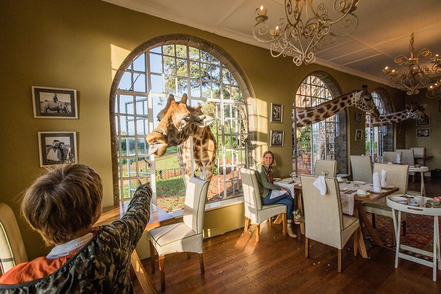 Das Giraffe Manor wurde in den 30er Jahren inmitten einer riesigen Parkanlage erbaut, die die Heimat für eine Vielzahl von Vögeln, Warzenschweinen oder auch Dik Diks, vor allem aber für die Rothschild-Giraffen ist. Das ursprüngliche Herrenhaus wurde 1932 erbaut und verfügt über sechs Zimmer. Im Jahr 2011 wurde ein neuer Teil des Herrenhauses geschaffen - das Garden Manor - das sich direkt nebenan befindet. Bis heute hat sich die Unterkunft ihren Charme erhalten und sollte für mindestens zwei volle Tage gebucht werden, um das Ambiente ohne Hektik voll und ganz genießen zu können. Denn neben einem ausgiebigen Frühstück in der Gesellschaft unzähliger Giraffen, können Sie während Ihres Aufenthaltes das Karen Blixen Museum, das Daphne Sheldrick-Elefantenwaisenhaus und natürlich das Giraffen-Zentrum besuchen.
